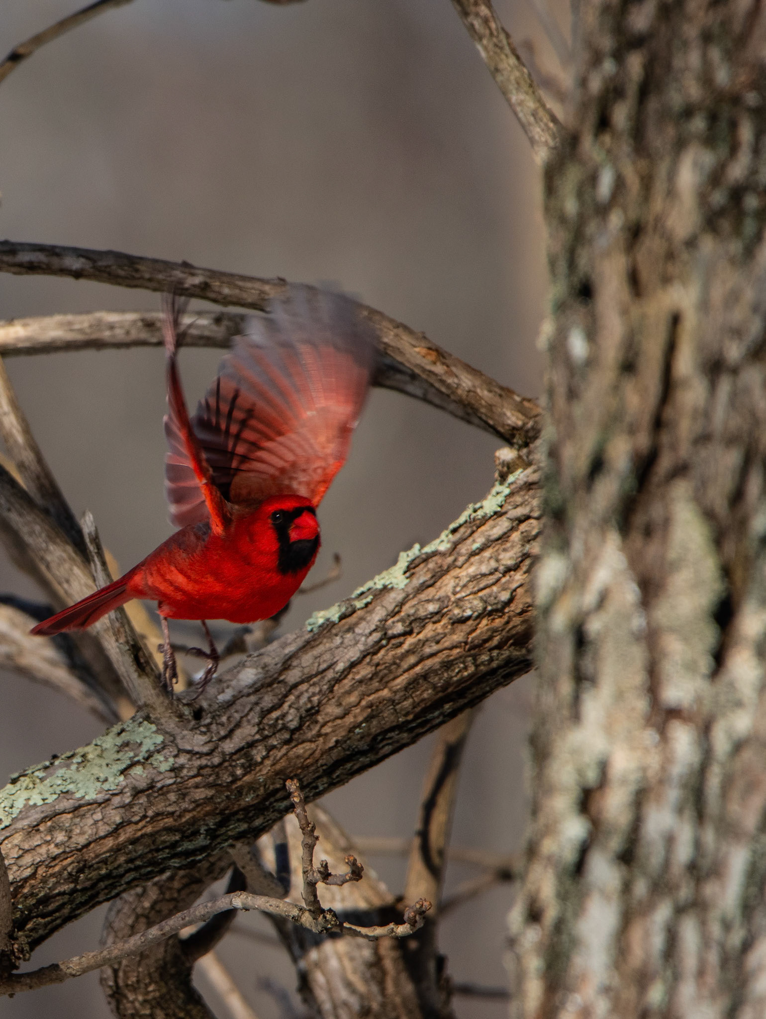 Red Winged Blackbird flying along a fence at Hawk Knob Cidery