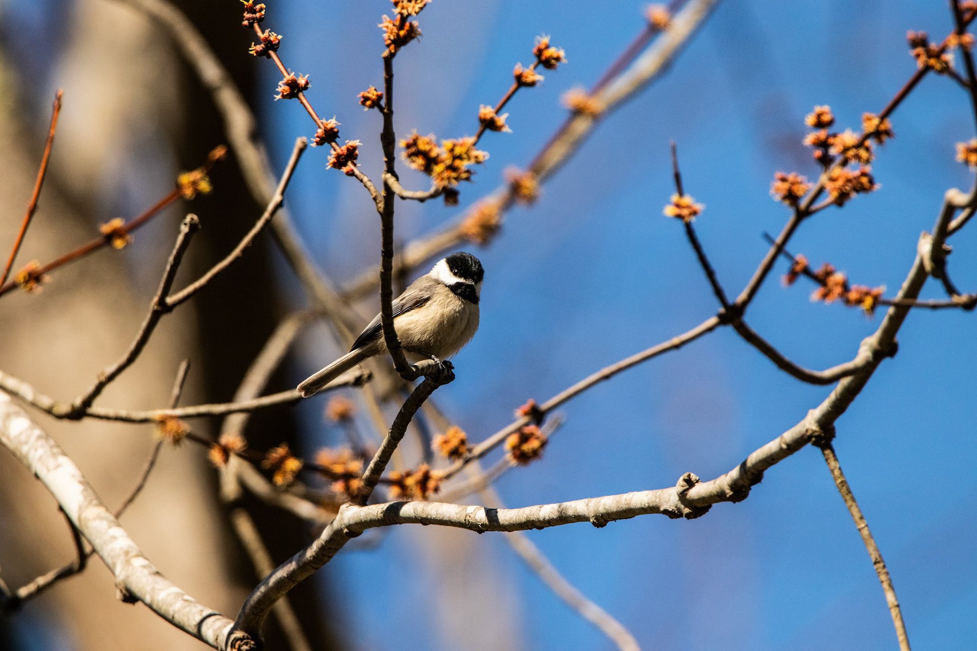 Greedy little Chickadee stuffing two seeds in it's beak at a time